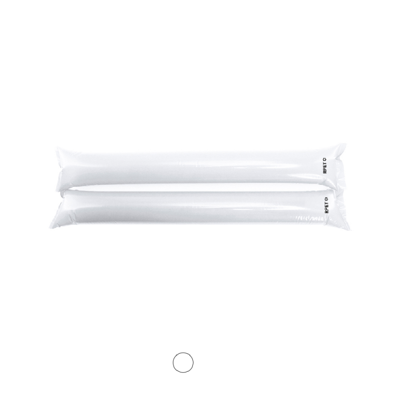 Características: Par de bastom sticks/aplaudidores en resistente RPET y ruidoso material de color blanco. Reutilizables y con válvula de inflado incluida.