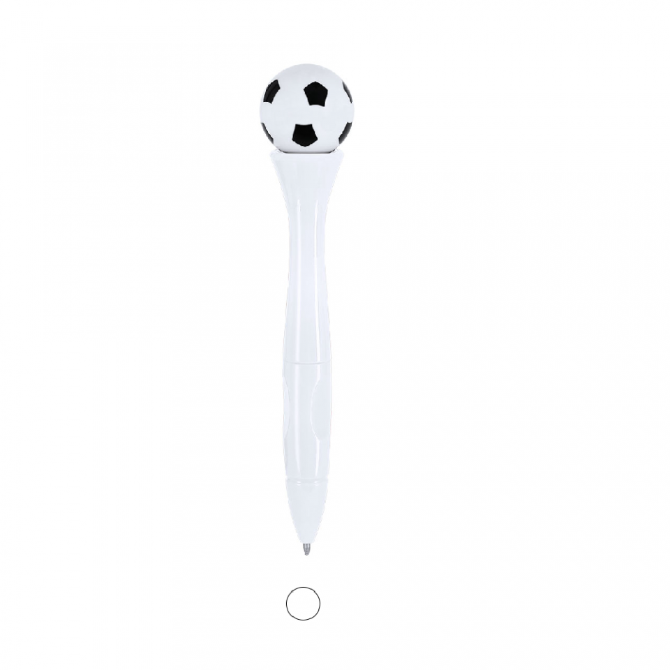 Características: Bolígrafo antiestrés de mecanismo giratorio y diseño de balón de futbol. Cuerpo en acabado sólido brillante. Con tinta azul.