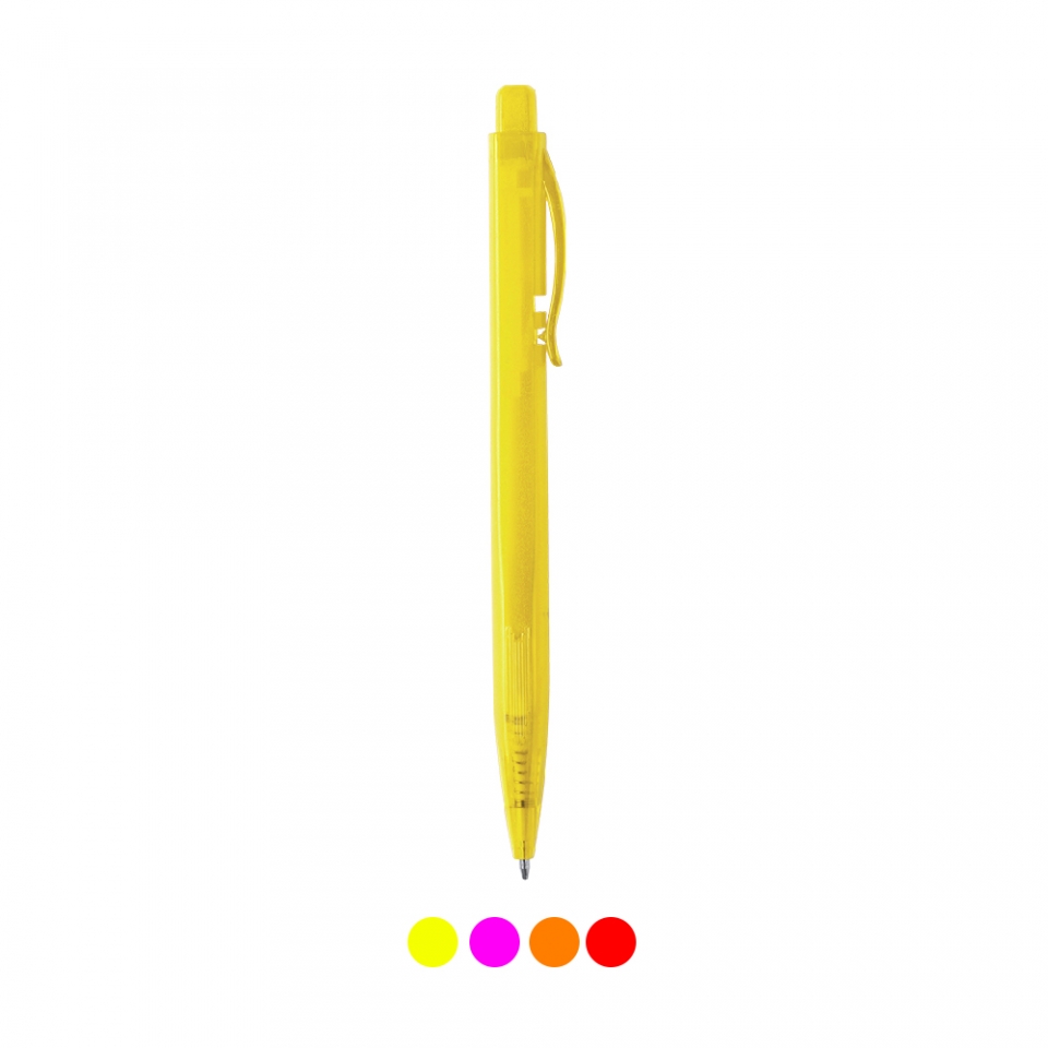 Características: Original bolígrafo con cuerpo rectangular de acabado translúcido monocolor. Con mecanismo pulsador, original clip y disponible en extensa gama de colores. Tinta azul.