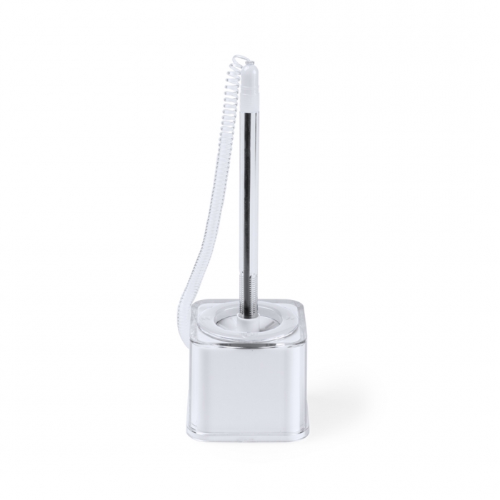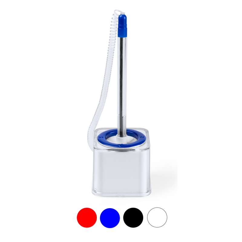 Características: Bolígrafo con base transparente y cinta de sujeción de anilla elástica. De original diseño bicolor a juego y base antideslizante.
