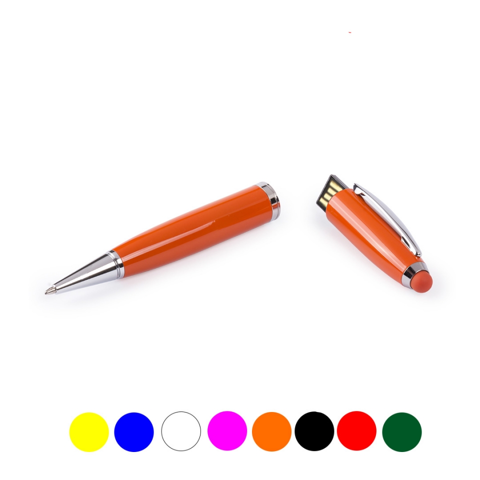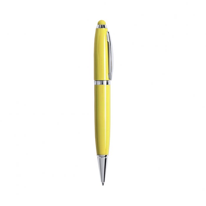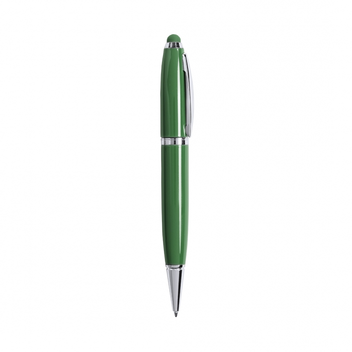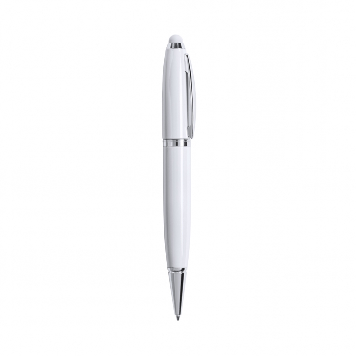 Características: Bolígrafo tecnológico multifunción en desenfadados colores, con memoria USB de 8GB de capacidad integrada en la capucha y puntero de suave goma a juego. Cuerpo en acabado métálico brillante, de apertura giratoria y con tinta azul. Presentado en elegante caja de cartón de color blanco con cierre magnético y suave espuma troquelada.