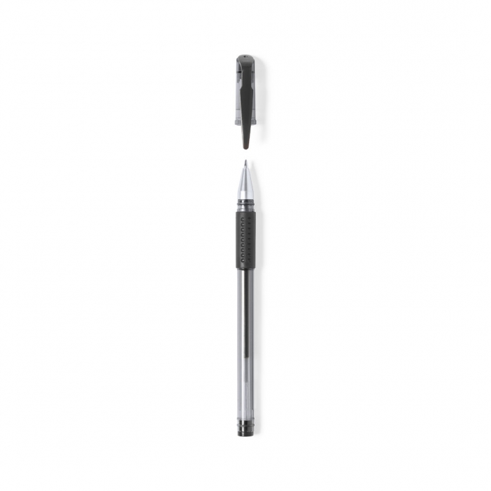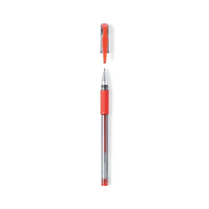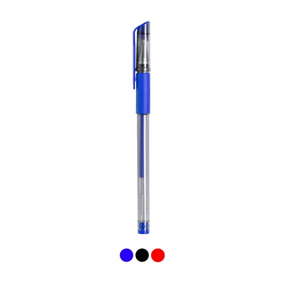 Características: Bolígrafo en tinta gel de original diseño transparente, con empuñadura, capucha y detalles a juego. Disponible en varios colores de escritura, con tinta en el mismo color que los acabados del bolígrafo.