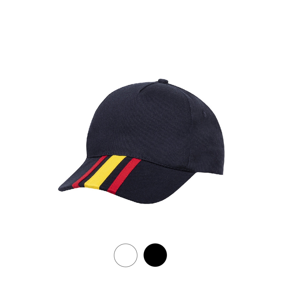 Características: Gorra de diseño España en material 100% algodón peinado. De 5 paneles y con cierre ajustable de velcro.