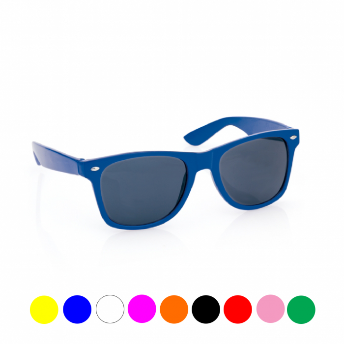 Características: Lentes de sol con protección UV400 de clásico diseño. Con montura de acabado brillante en divertidos colores y lentes en color negro.