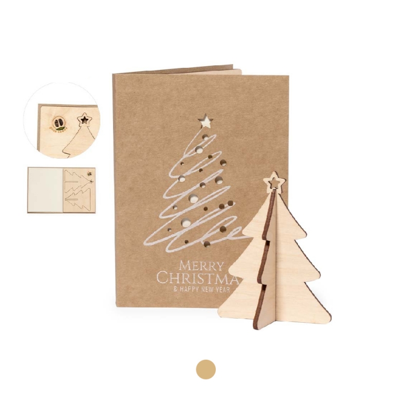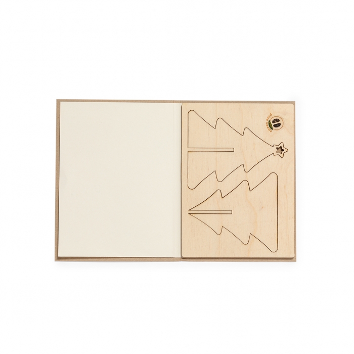 Árbol de navidad de madera natural con troquelado en el interior para fácil montaje.