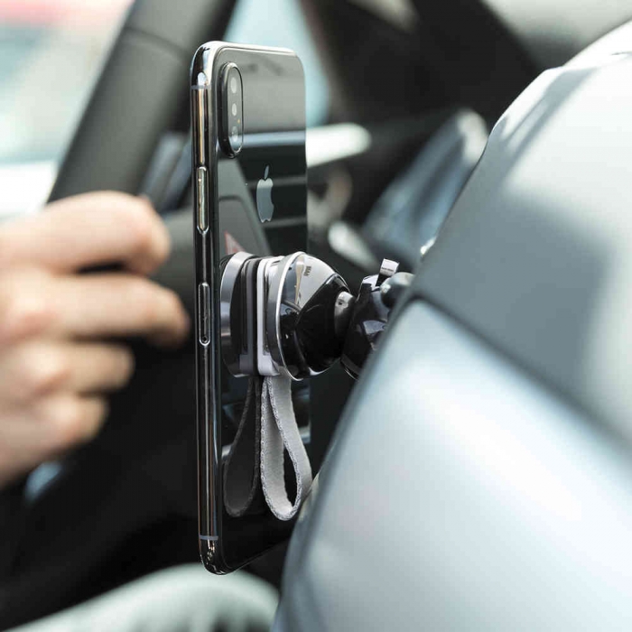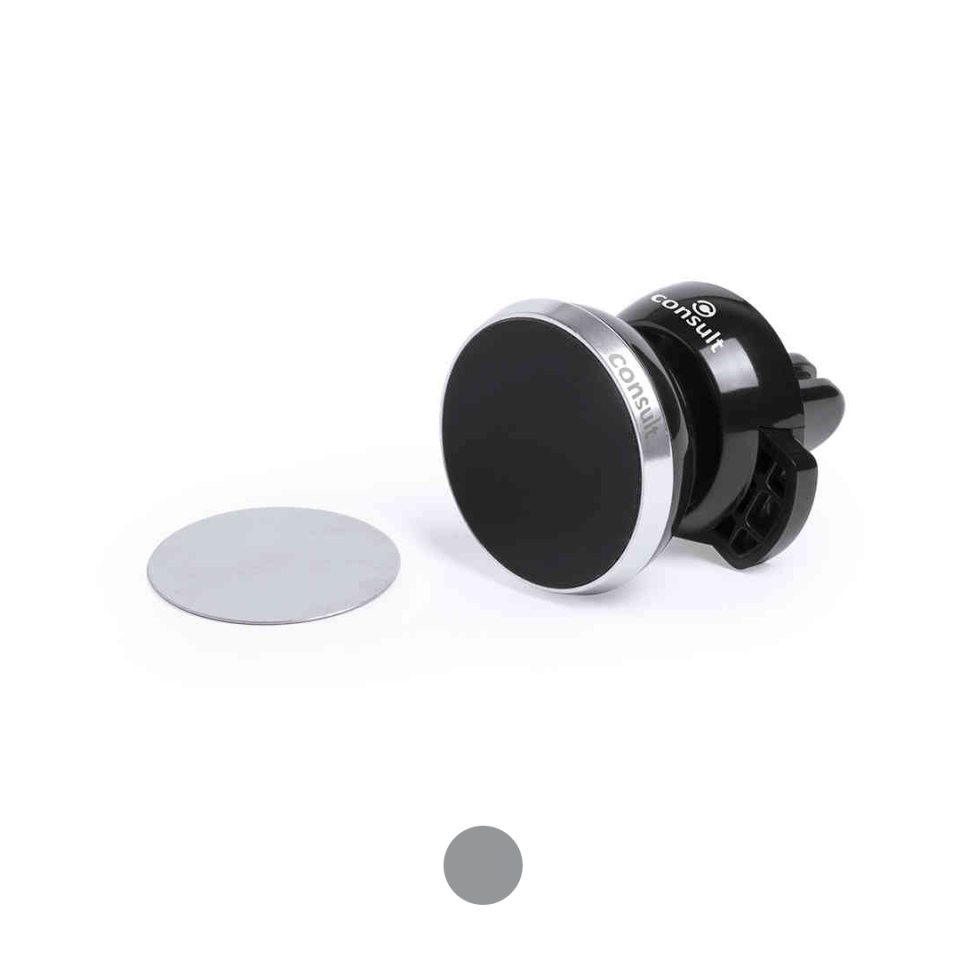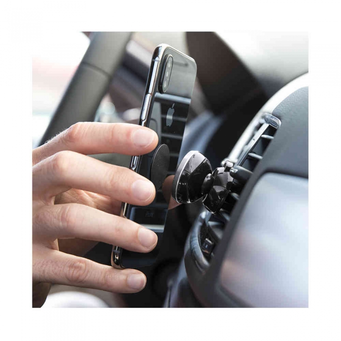 Características: Soporte magnético para smartphone de diseño minimalista y elegante acabado en aluminio negro en combinación con llamativos colores metalizados. Con sistema de fijación telescópico para rejilla de ventilación del automóvil y accesorio adhesivo para smartphone.