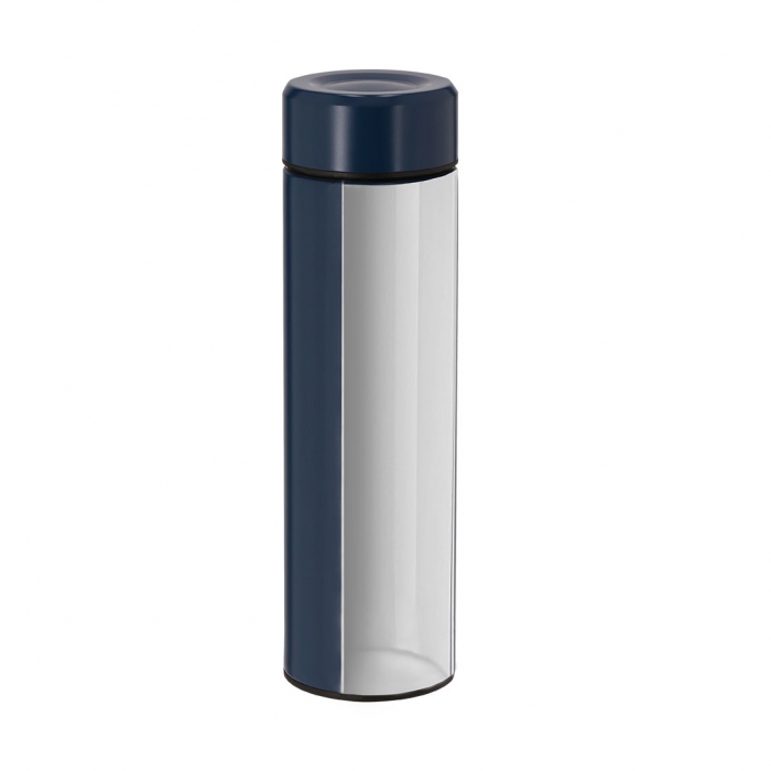 Características: Termo en Acero Inoxidable Reciclado de 450 ml de capacidad. Con doble pared para mejor y más duradera conservación de la temperatura e interior con recubrimiento de cerámica, apto para bebidas carbonatadas. Infusor incluido y sistema de apertura fácil a rosca. Con distintivo de Acero Inoxidable Reciclado.