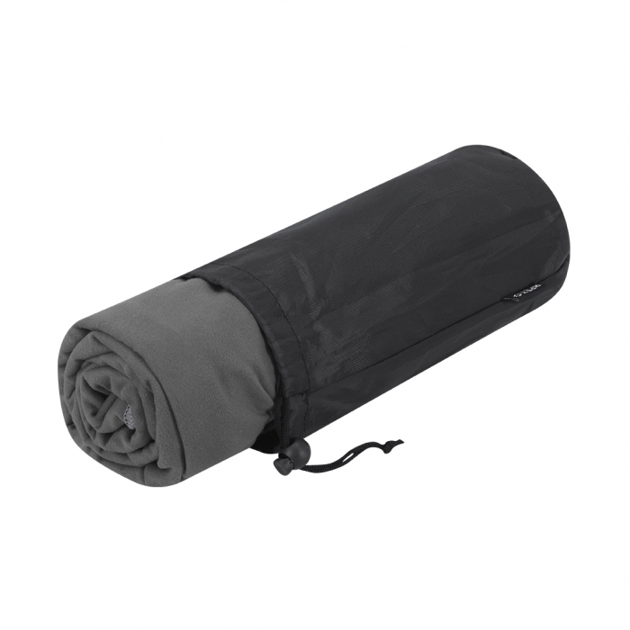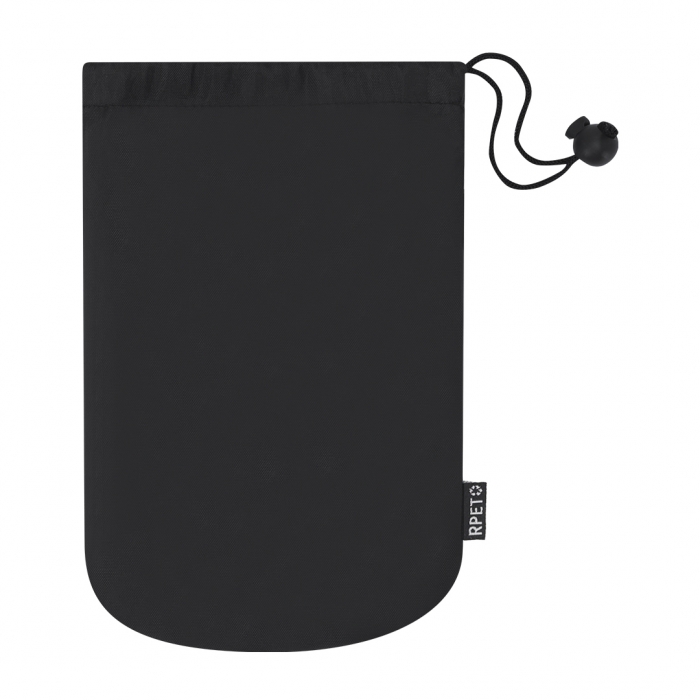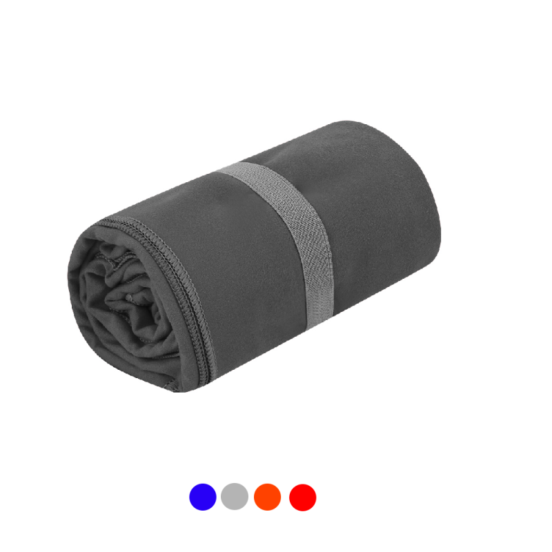 Características: Toalla de 130x80cm ultra absorbente confeccionada en RPET de 200 g/m2. Dispone de cinta elástica para cuando se pliega poder guardarla, presentada en bolsa de poliéster RPET para fácil transporte. Con distintivo logotipo RPET.